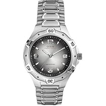 A traditional timepiece with a sophisticated edge. This GUESS watch is perfect for recreational swimming and can be worn in shower. It features a brushed and polished silvertone case and bracelet. Features date function and rotating bezel. Water resistant up to 100 meters. Ten-year limited warranty.
